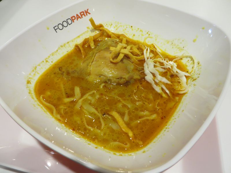 バスターミナルの近く、駅からも徒歩圏内の大規模ショッピングモール「セントラルプラザ」の地下にあるフードコートです。地上階にはカフェ、ハンバーガー屋、上階にはレストラン街がありますが、ここも店舗が多く、タイ料理をはじめとして多くの種類の料理を食べることができます。それぞれの店舗で元気を支払う形式で、飲み物は別の店で購入というスタイルでした。屋台などで食べるのに比べると高くつきますが、涼しいところで食事ができるという意味ではいいかもしれません。