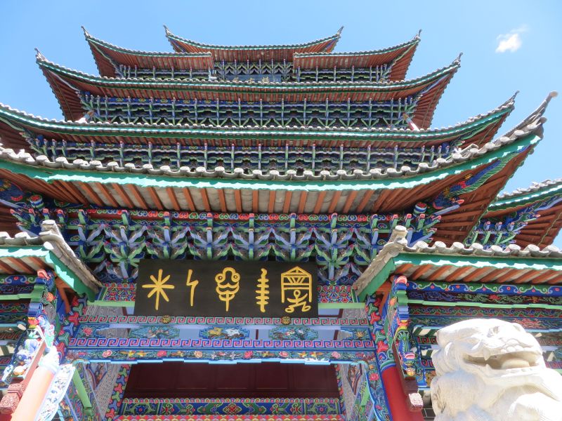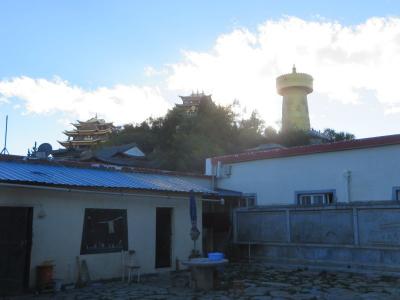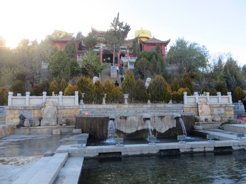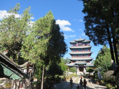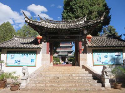 四方街などから看板を頼りに獅子山に登って行くのですが、途中の門(入場ゲートを兼ねている)で「獅子山」への入場料(50元)が必要になります。そこからさらに林の中を上がったところに、寺のような施設があります。