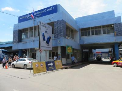ヴィエンチャンからの国際バスで、このターミナルに到着しました。鉄道駅や、セントラルプラザに近く、ホテルや食堂、コンビニなどが近隣に多くあり便利なエリアです。ターミナルの建物自体は大きくなく、待合スペースもふきっさらしなので、近くの食堂やコンビニなどにいるのがいいのかもしれません。