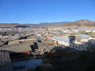 塔は階段で最上階(5階)まで上がることができ、古城エリアだけでなく、西方の新市街地や、玉龍雪山も(晴れていれば)見渡せることができます。ただ、地上では気にならなかったのに、えらい風がきつかったのが気になるところです。