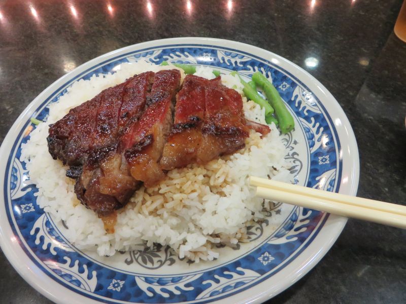 最近、北角辺りに宿を取ることが多くなってきたので、あらかじめこれ(フォートラベル)で目星をつけていたいくつかの店のうちの一つ。すぐに探し当てられたので、近寄ってみるとメニューの種類の多さにびっくり。一度現地で食べてみたかった「蜂蜜叉焼」が目についたので、48HK$という安さもあって、入ってみました。