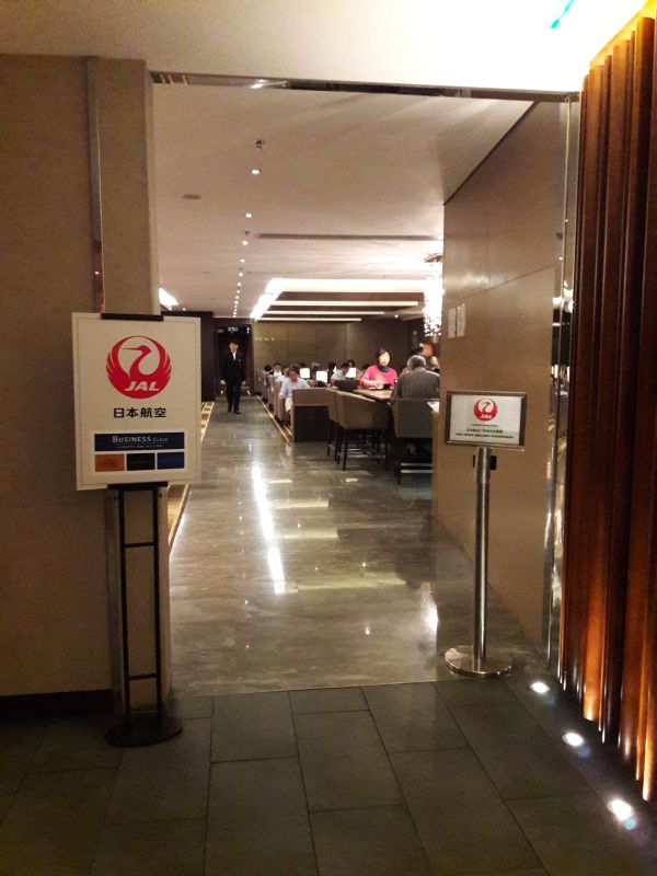 入ってすぐの飲食ができるスペースを通り抜けた先に、JAL専用スペースがあり、軽食(サンドイッチやおにぎり)などと、日本語の新聞・雑誌などが用意されていました。落ち着いた雰囲気で、ゆっくりと飛行機の時間を待つにはいい場所でしたが、食事を期待していたので、すぐに「共用」スペースに戻り、無料の食事(この時は、雲呑麺)をもらいました。こちらは、空席を見つけるほど混雑しており(結局、相席)、がやがやとうるさかったので、食べた後はすぐに出たぐらいでした。