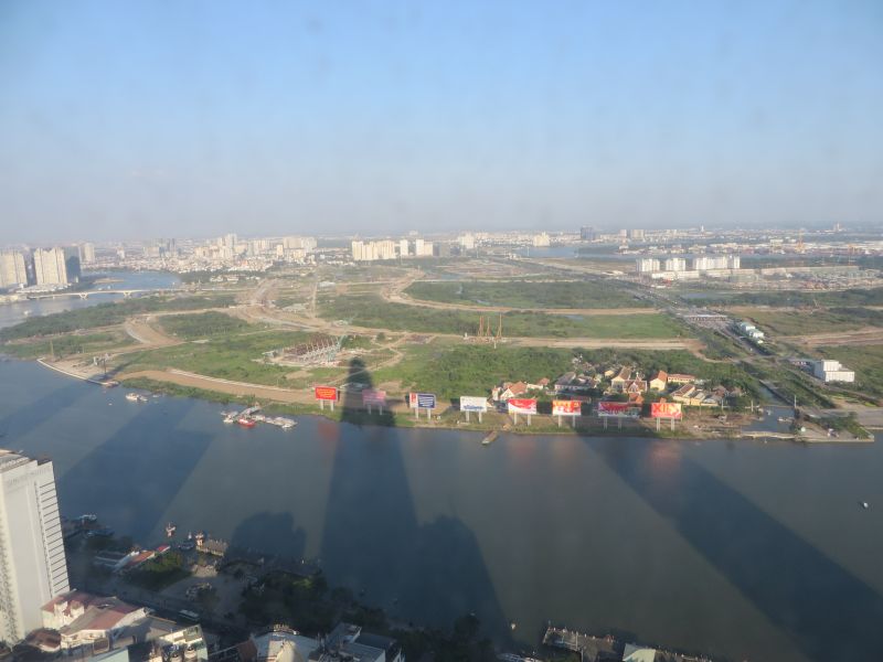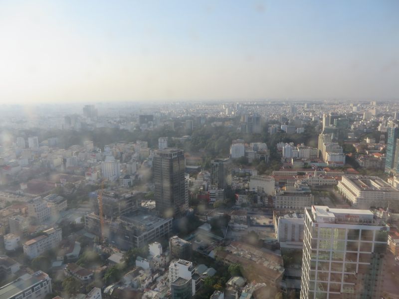 「新しい街に訪れたら、まずは、高い所に行ってみる」というモットー(?)のもと、ホーチミンに到着した日の夕方に上ってみました。ほかの博物館などの施設の入場料の安さと違い、ずいぶん高いけど仕方がない・・・とは思っていたのですが、やはりほかの人たちも同じことを思っているのか、展望フロアに上がったところで、ガラガラでした(客は10人程度)。360度ガラス張りなので眺めはいいのですが、そのガラスをしばらく洗っていないらしく眺望は良くなかったです。