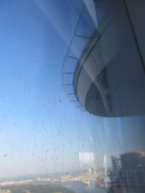 外から見た時、ヘリポート(のようなもの)がある特徴的なカタチのビルですが、展望フロアはどうもその下だったらしく、なんだか損したような気も・・・。- 旅行時期