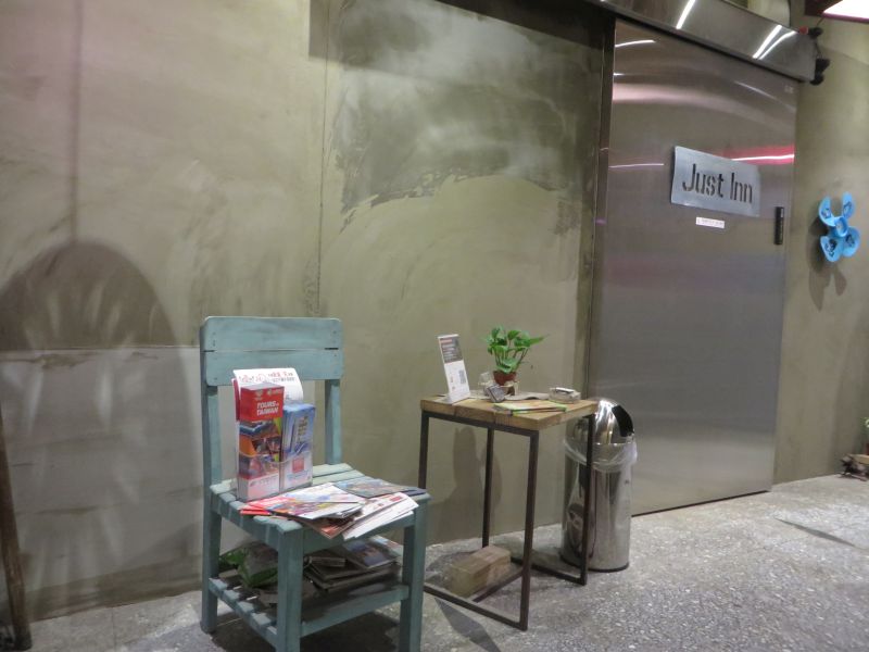 台北駅、空港へのバス乗り場に近い、安い宿ということでここを予約しました。地図や住所からすると、どうも別の名前のホテルがあるのですが、「ジャストイン」が見つかりません。そのホテルのフロントで尋ねると、「ここの建物の3階」と案内されました。どうも、その雑居(?)ビルの3階部分が「ジャストイン台北」のようです。
