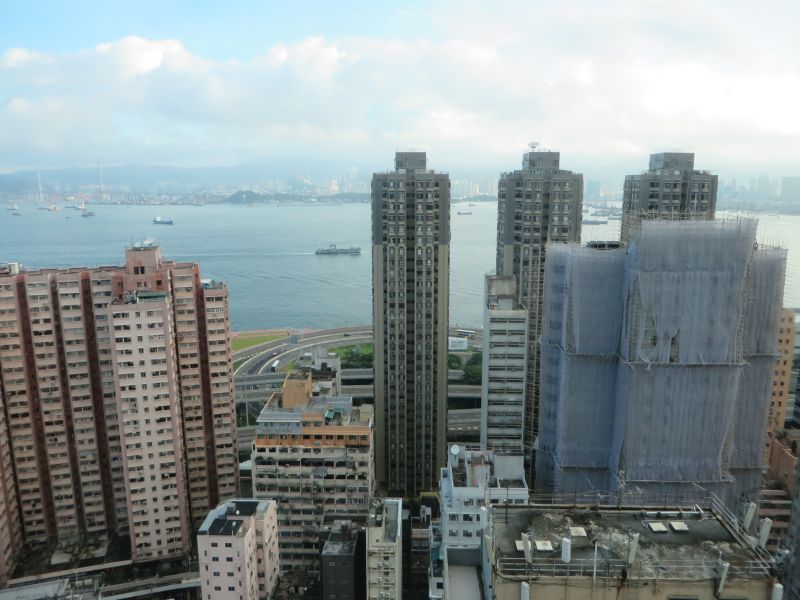 敷地が狭いためか、フロントはエレベーターに乗って3階に上がったところで、1フロア当たりの客室も少ないようです。夜遅くチェックインしたためか、最上階(32階)の一つ下のフロアに案内されたおかげで、「海が見える」部屋に泊まることができました。・・・が、半分は山側の部屋ですし、低層階はほかの建物にさえぎられて「ハーバービュー」は期待できません。