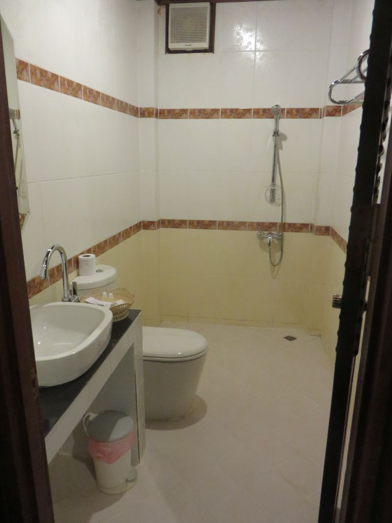 オフシーズンのためか、3000円/1泊程度で泊まることができました。空港からの乗り合いタクシーで降ろしてもらったところから、数十メートルほどでたどり着くことができました。ただ、フロント設備がある母屋(?)の裏手にも客室がありますが、あてがわれたのははす向かいの離れ(?)でした。・・・セキュリティなどに不安はありますが。