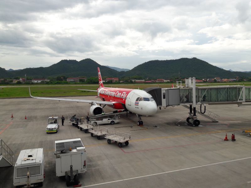 バンコクからのエアアジア便で到着しました。日本の地方空港サイズの、こじんまりとした、山々に囲まれた空港でした。出発・到着便に対応して、各施設が稼働するような感じで、入国審査も、税関も、売店も、一気に混雑し、その後で一気にひいてしまうような雰囲気でした。