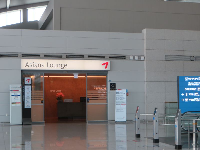 アシアナ航空から、スタアラ系の別の航空会社へ、3時間ほどの乗継時間があったため、コンコース側のビジネスクラスラウンジを利用しました。コンコースほぼ中央、免税品店などがあるフロアから1階上がったところに、アシアナラウンジがあり、同じ入口の左側にはファーストクラスラウンジがありました。