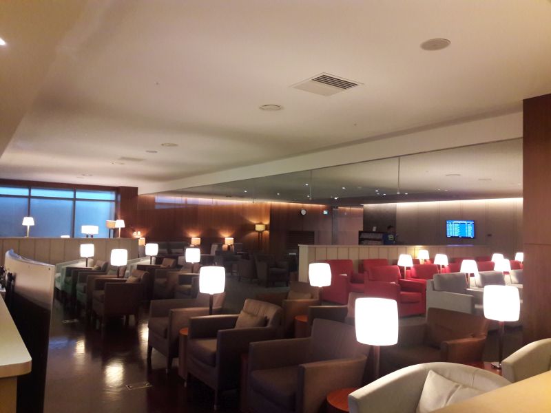JALでの帰国便が、プレミアムエコノミーだったため、出発審査後のラウンジを無料で使うことができました。南側審査場の1フロア下のラウンジです。