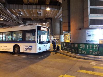 香港から中国側へと移動しましたが、元朗駅地上の国境施設行きバスに乗り、深セン湾大橋を通り、バス降り場は・・・まだ香港でした。案内に沿って、建物に入り、平日の昼前で空いていたためか、中国に入る(=建物を出る)まで10分と掛かりませんでした。