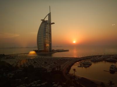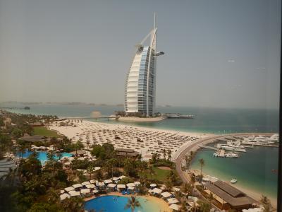 全ての部屋がオーシャンビューというこのホテル。お部屋の窓からはプライベートビーチと7つ星ホテル「ブルジュ・アル・アラブ」が見えます。