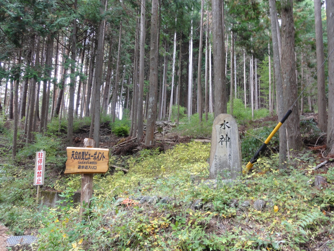遠山郷が見える展望台には林の中を歩いて20~30分ほどです。