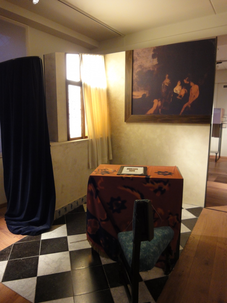 フェルメールのこれまでの絵のコピーが地下展示されており、彼の人間関係や当時の歴史、彼の作風などについての展示が2階と3階にある。有名なミルクを注ぐ女性の舞台になった部屋が再現されており写真撮影もできる。彼の描いた絵の一部はインフォメーションセンターに行けば日本語のガイドブックを渡してくれるので、それを見ながら足跡をたどれる。