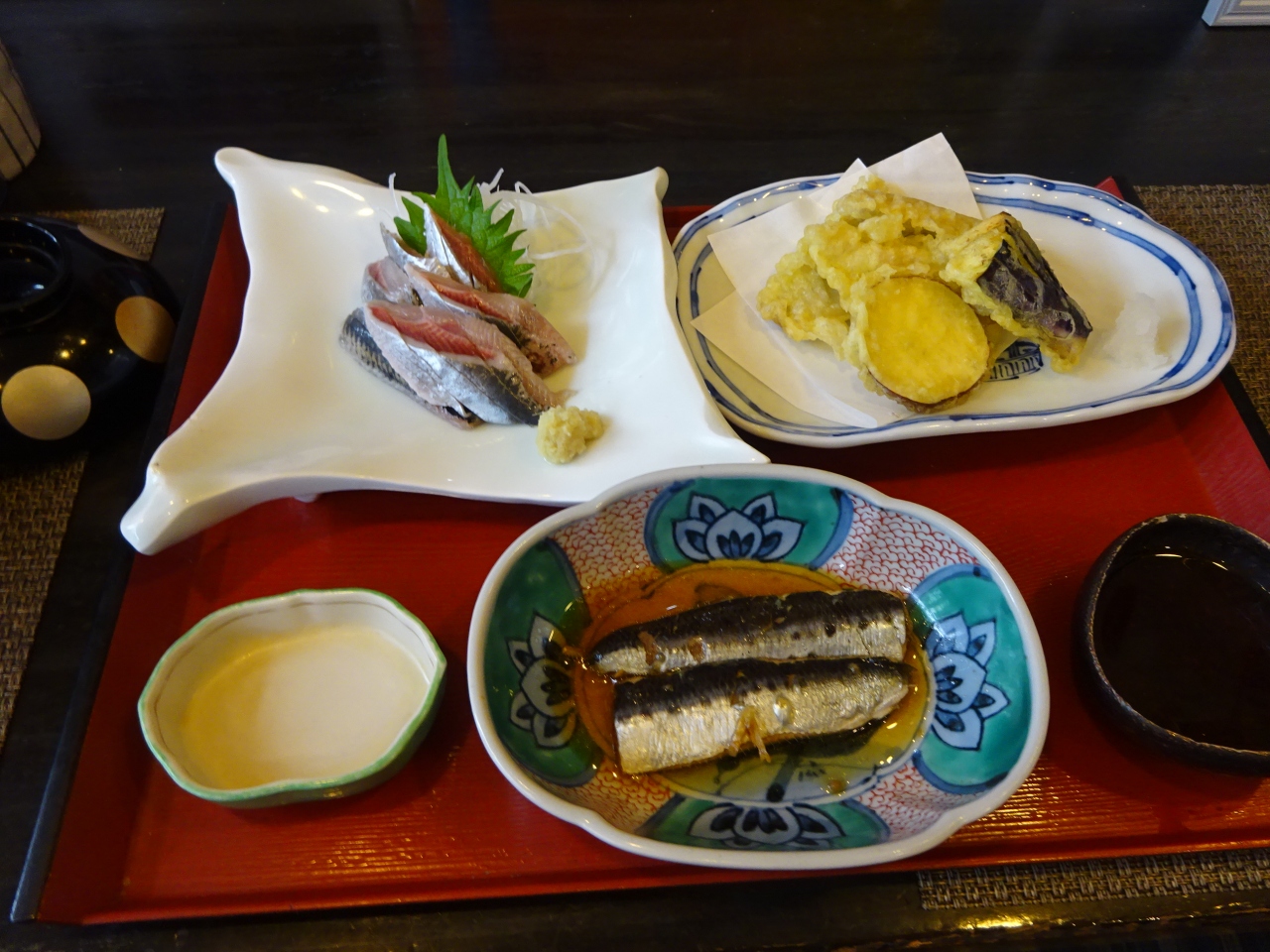 ということで「入梅いわしおまかせ御膳」を注文。いわしの漬け丼、刺身、煮つけ、天ぷら、とにかくいわしづくし。特に「漬け丼」は、一口食べたら止まらないおいしさでした。