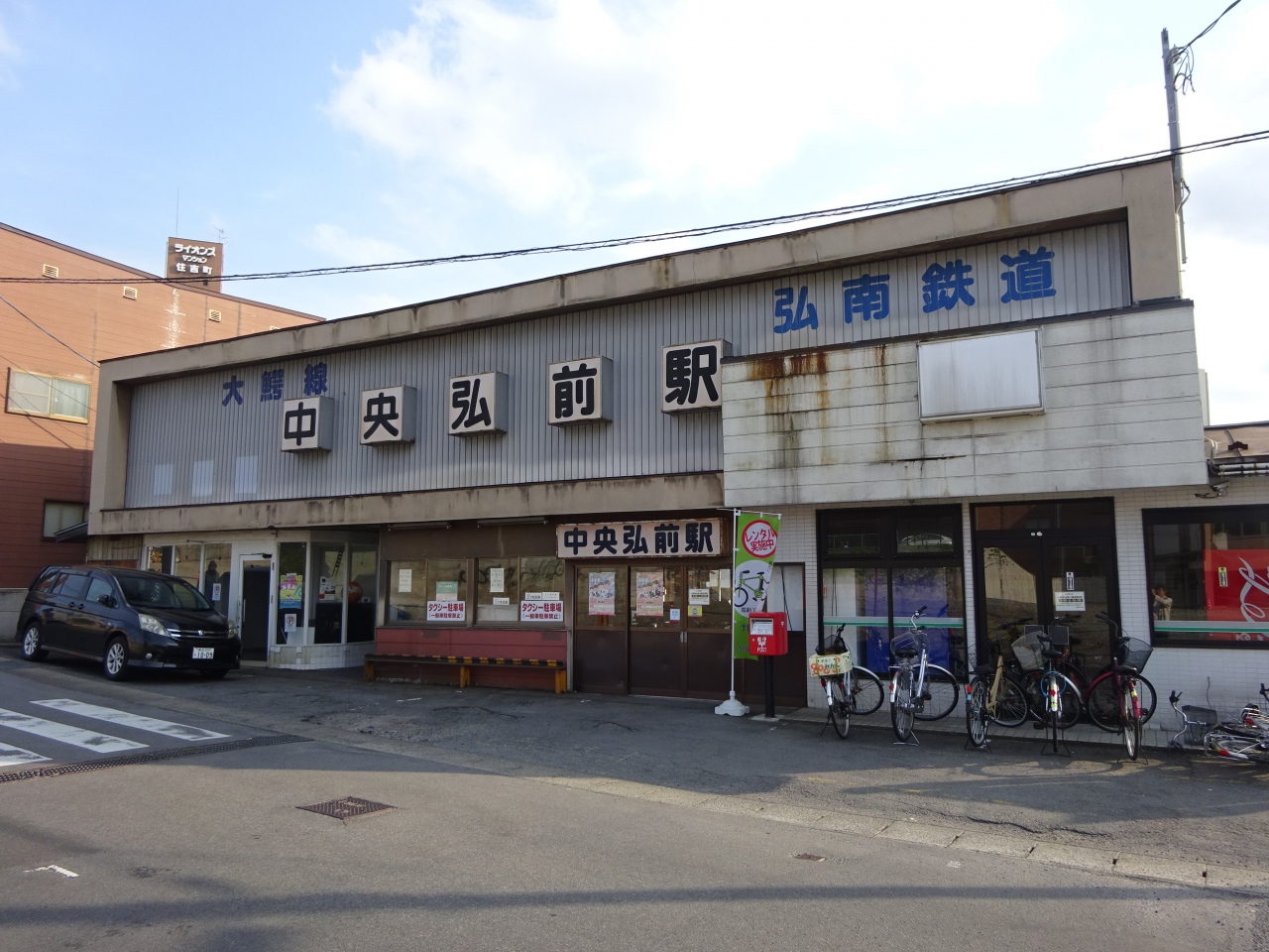 こちらの駅の方が市役所や弘前城などが近いのですが、どちらかというと住宅地の中という感じで、周りの建物に囲まれて、一見駅とはわかりません。