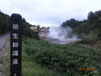 秋田・岩手の県境である八幡平の秋田県側の山中にある後生掛温泉。その温泉施設の西側に、温泉が盛んに吹き出している区域をぬうようにして遊歩道が整備されています。遊歩道以外は立入禁止ですが、そうでなくても辺りは硫黄のにおいが立ちこめ、歩道以外は歩きたくない雰囲気ではあります。