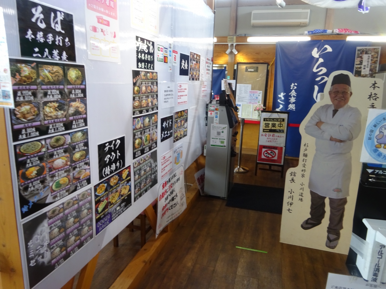 喜多方の市街地の北の方、駅からは2.5kmぐらい離れたところにあります。広い駐車場がありますが、お昼時に行ったのでほぼ満車でした。