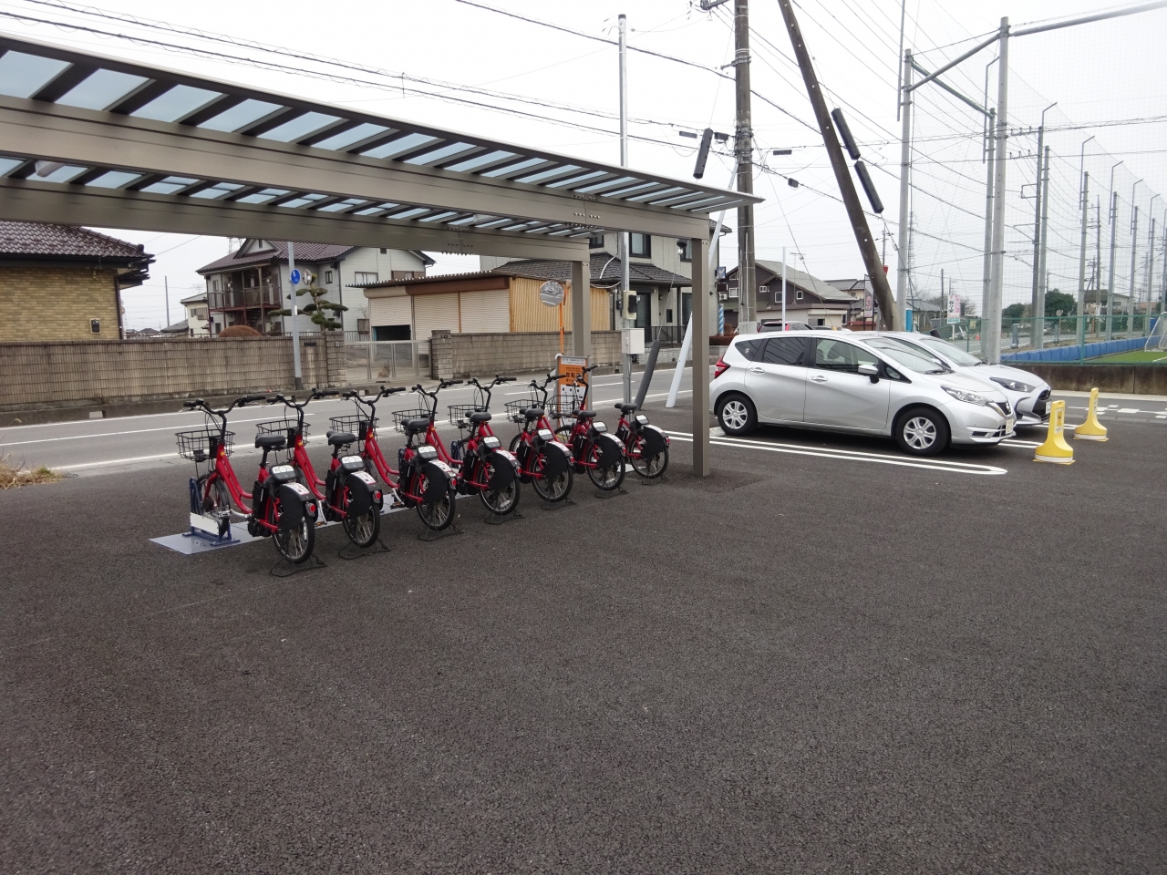 現在のところ、バスターミナルにあるような待合室もトイレもありませんが、敷地内にはパークアンドライド用の駐車場や、カーシェア、サイクルシェアの施設があり、町内を移動するには便利にできています。
