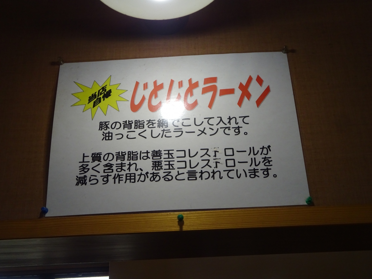 喜多方ラーメンの基本は醤油ベースのスープに縮れ麺。このお店はそれに加えて、背脂をたっぷり入れた「じとじとラーメン」を売りとしています。見ていると、半分以上の人がこれを注文していました。