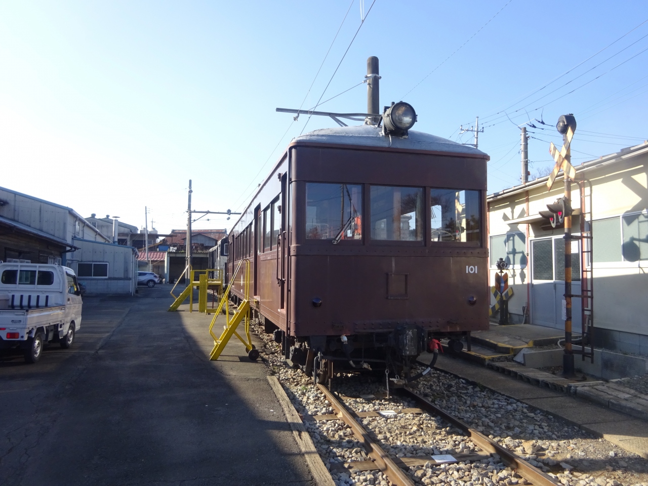あとは、係員さんの案内で車庫内を見学となります。昭和3年の開業時から走っているデハ101の車内や、プレハブの資料庫の中などを見て歩きます。いずれも見応えあり!