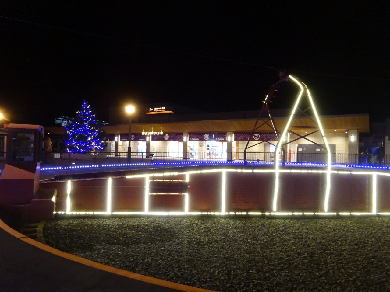 夜になると、駅前周辺と合わせてきれいにライトアップされています。- 旅行時期