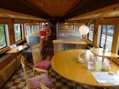 特に1号車の特別車両は事前予約制で、予約がないと車内に入ることもできませんが、独特な座席配列、アテンダントさん乗務、無料のドリンクなど特別な空間になっています。おかげでゆっくり落ち着いて過ごすことができます。週末などはスイーツプランなどもあるようです。