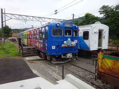 河口湖駅寄りのスペースには、初代フジサン特急の車両と、数年前まで走っていたきかんしゃトーマス号の車両がいました。いずれも内部には入れないですが、間近で見ることができます。