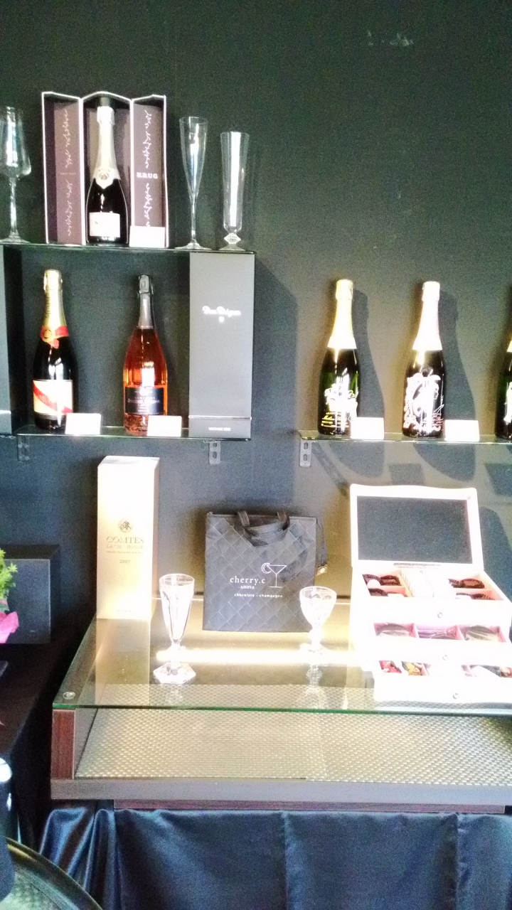 店内にはシャンパーニュの瓶が飾られ、