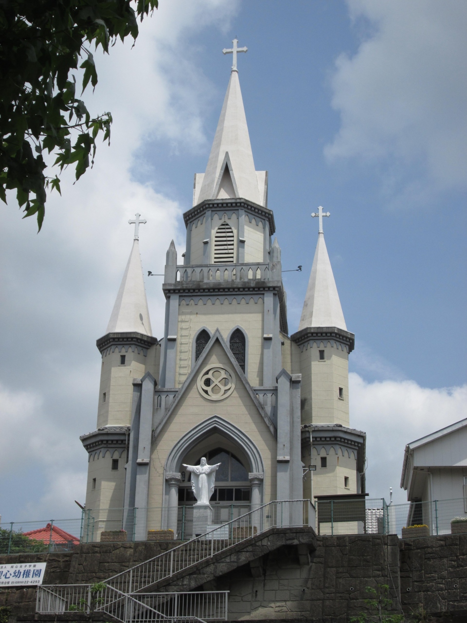 駅からも近く、国道の大通りに面して立つ教会です。教会自体が崖の上に立つこともあって、より一層大きく立派に見えます。海外の建物と遜色ないほどの風格です。階段を上がるのが大変で、暑いときに行ったのでへばりました。