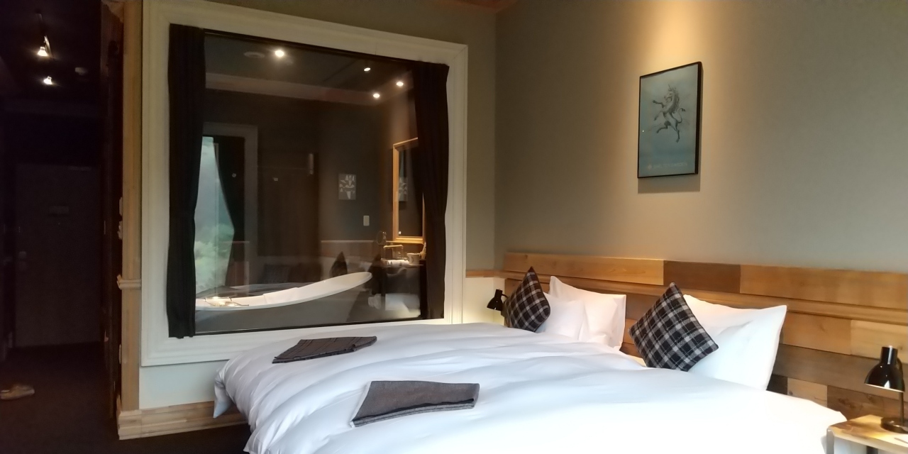 清潔な部屋と広めのバスタブ。スペースは必要十分。