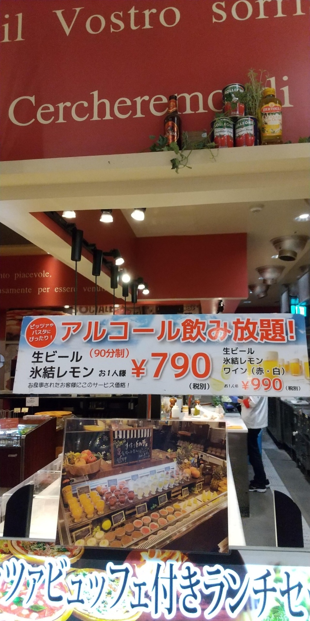 ピザ食べ放題とアルコール飲み放題がついて2500円です。