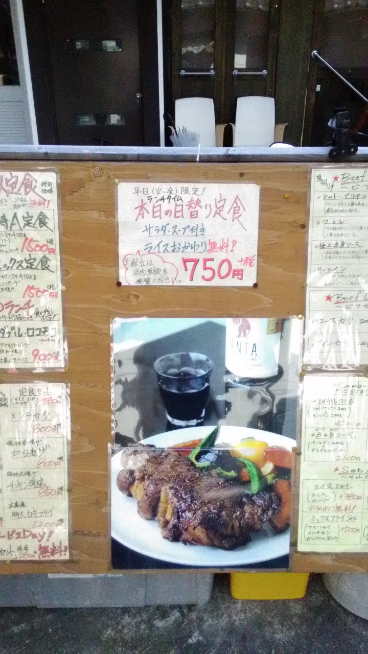 ステーキの料金が引き下げられ、ワインもボトル1本1000円で出しているので