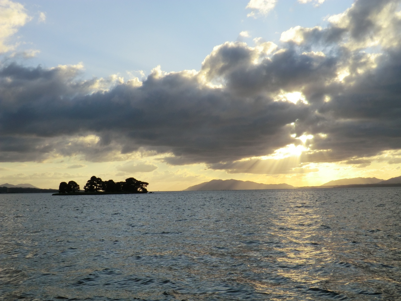 夕陽スポットで名高い宍道湖東岸から約200メートルくらいのところに浮かぶ小島です。自殺したお嫁さんの亡がらとともに浮かび上がってきたという伝説があります。悲しい伝説を持つ島ではありますが、夕陽を背景にとても美しく映えます。