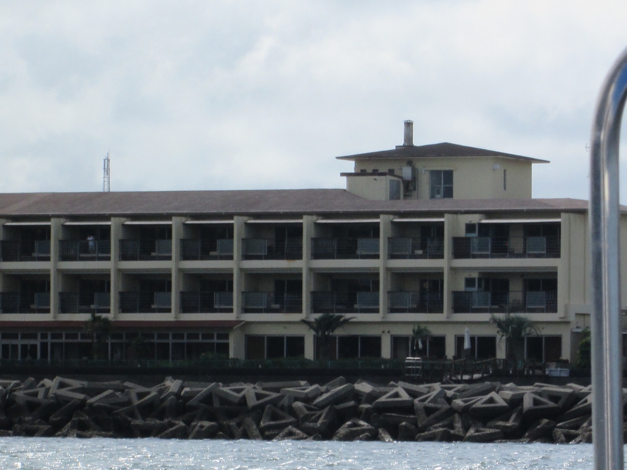 はいふうから少し奥に行ったビーチです。ヤシの木が植樹され、円弧型にレンガが敷かれた砂浜は、欧洲のリゾートを思わせます。海の水は大変きれいです。他に何もない離島の海水浴場なので、最高の立地ですね。7月なのに少し寒かったです。