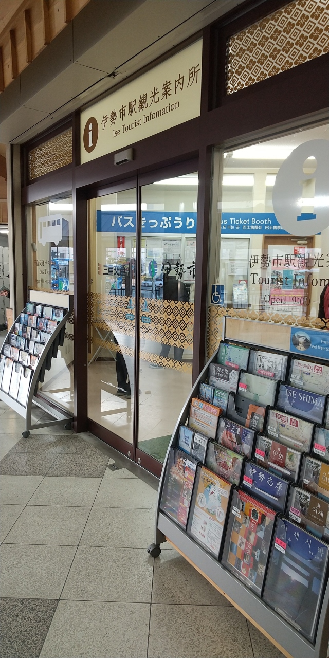 伊勢市駅にも同じインフォメーションセンターがあります。レンタカー屋の支店も入居しているようです。伊勢神宮外宮や内宮、おはらい町やおかげ横丁の地図や周辺の観光スポットのパンフレットなどがたくさん置いてあります。