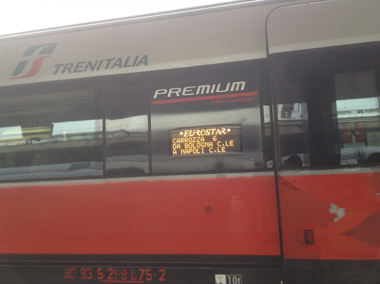フレッチャロッサはローマ、ミラノ、ベネチア、ナポリなど主要都市を高速で結んでいて、フレッチャルジェントはさらに足をのばした地方都市へとも走っています。停車駅はフレッチャルジェントのほうが多い印象でした。