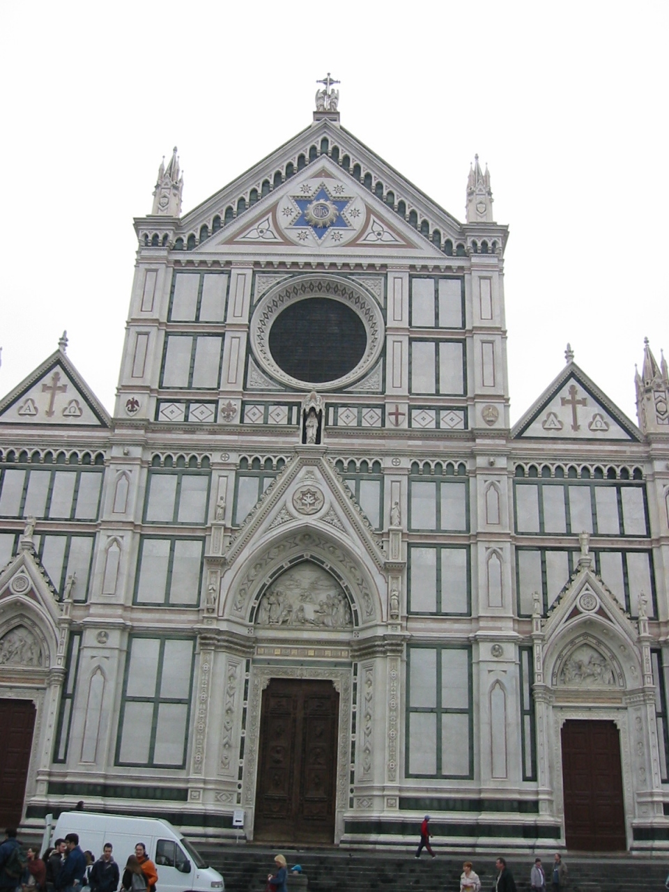 フランチェスコ修道院の教会として1228年から工事開始し1443年完成しました。ファサードは1863年に完成。ミケランジェロ・ガリレオ・マキャベリ・ロッシーニの有名人の墓があるそうです。世界遺産「フィレンツェ歴史地区」の構成資産のひとつです。