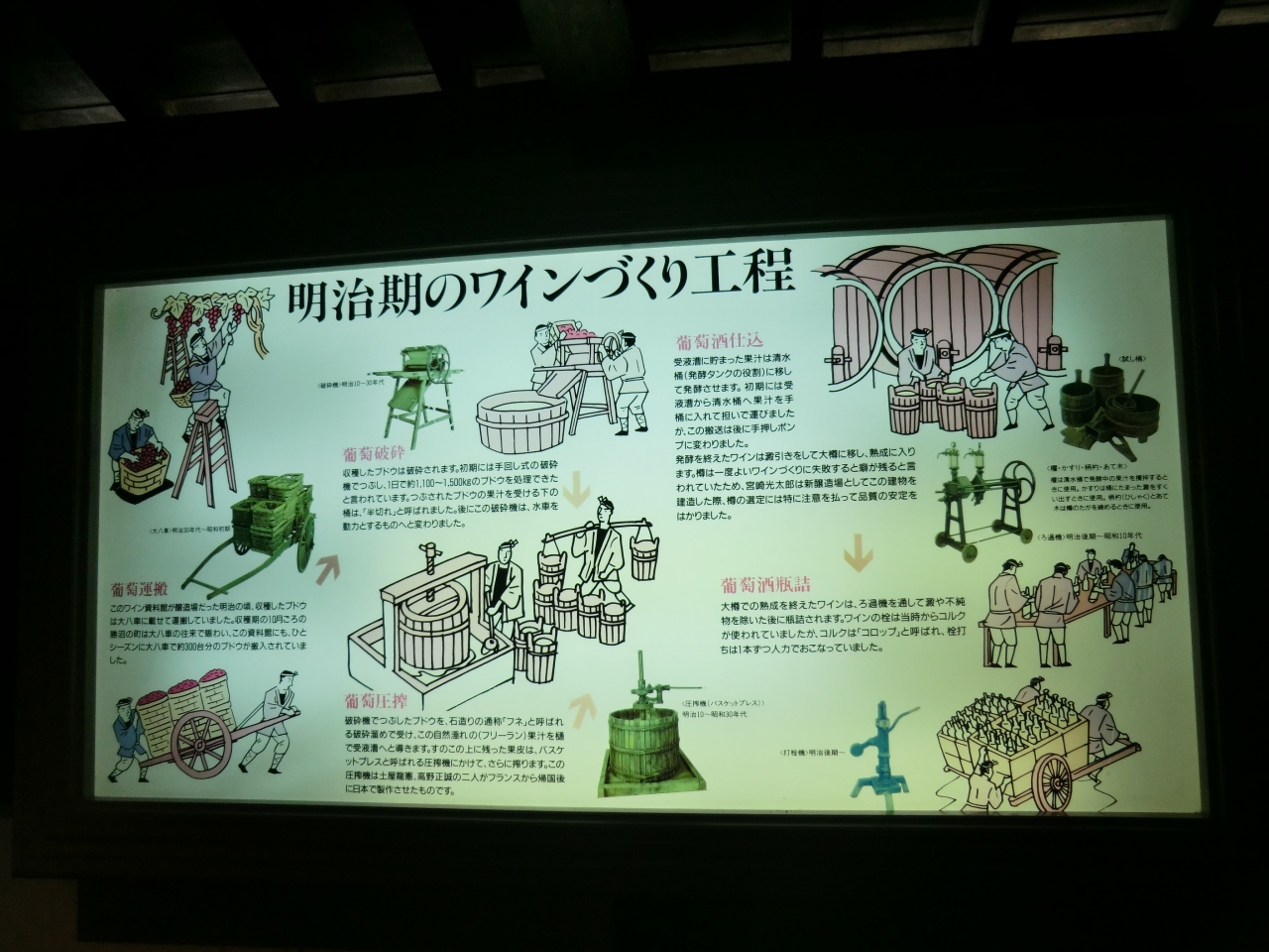 元は宮崎葡萄酒の第二醸造場で、現在はメルシャンワイン資料館として公開されています。現在でも貯蔵庫として使用されており、平成9(1997)年に県の有形文化財に指定されました。ここで勉強をして、その後向かいのカフェでワインを楽しみたいですね。