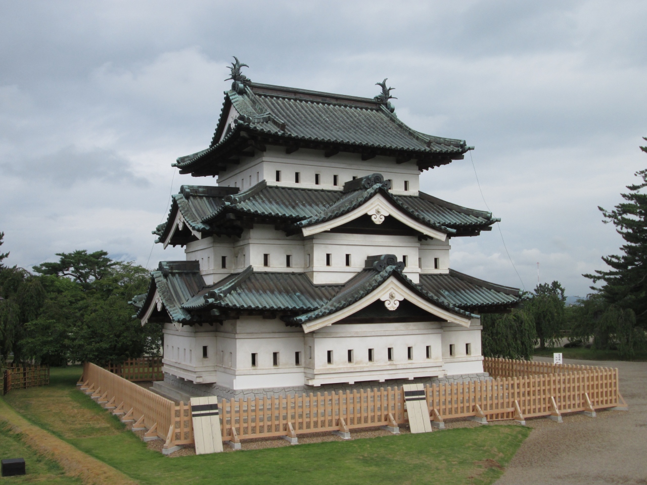 有料エリア内に、石垣修復中の東北唯一の江戸時代から残る弘前城の3層天守がありました。