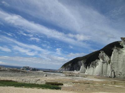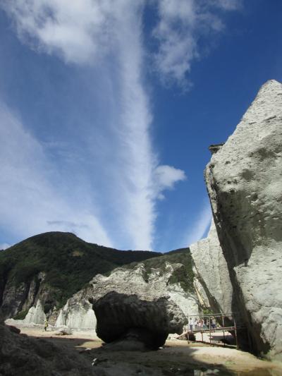佐井港から遊覧船で30分強、上陸前から絶景が迫って来ます。岩の巨大さにも驚かされます。