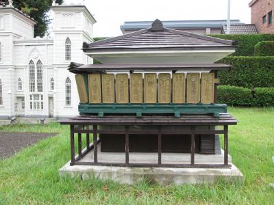 日本に現存している12の天守閣の一つですが、元々は櫓を改築して造ったので、他の城と比べるとかなり小さいです。本来石垣のぎりぎりのところにありましたが、改築工事のための数十メートル移築しています。お城に近づくと大きな看板に弘前城1100年に一度の石垣工事中とありました。