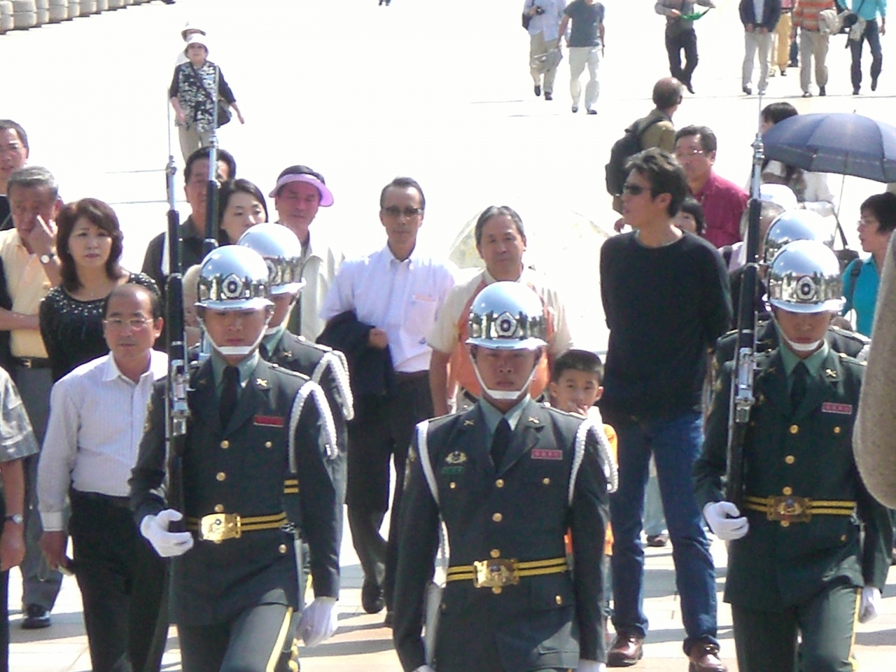 衛兵さんは瞬きもせず、微動だにせず直立不動で立っています。これはかなりしんどいなあと思います。両側に二人、交代する衛兵さんが二人と、4人見ました。終わった後は普通の人に戻る感じです。それまではすさまじい緊張感でした。