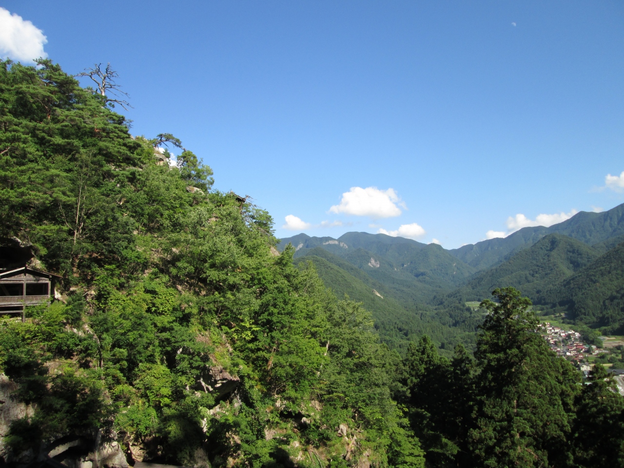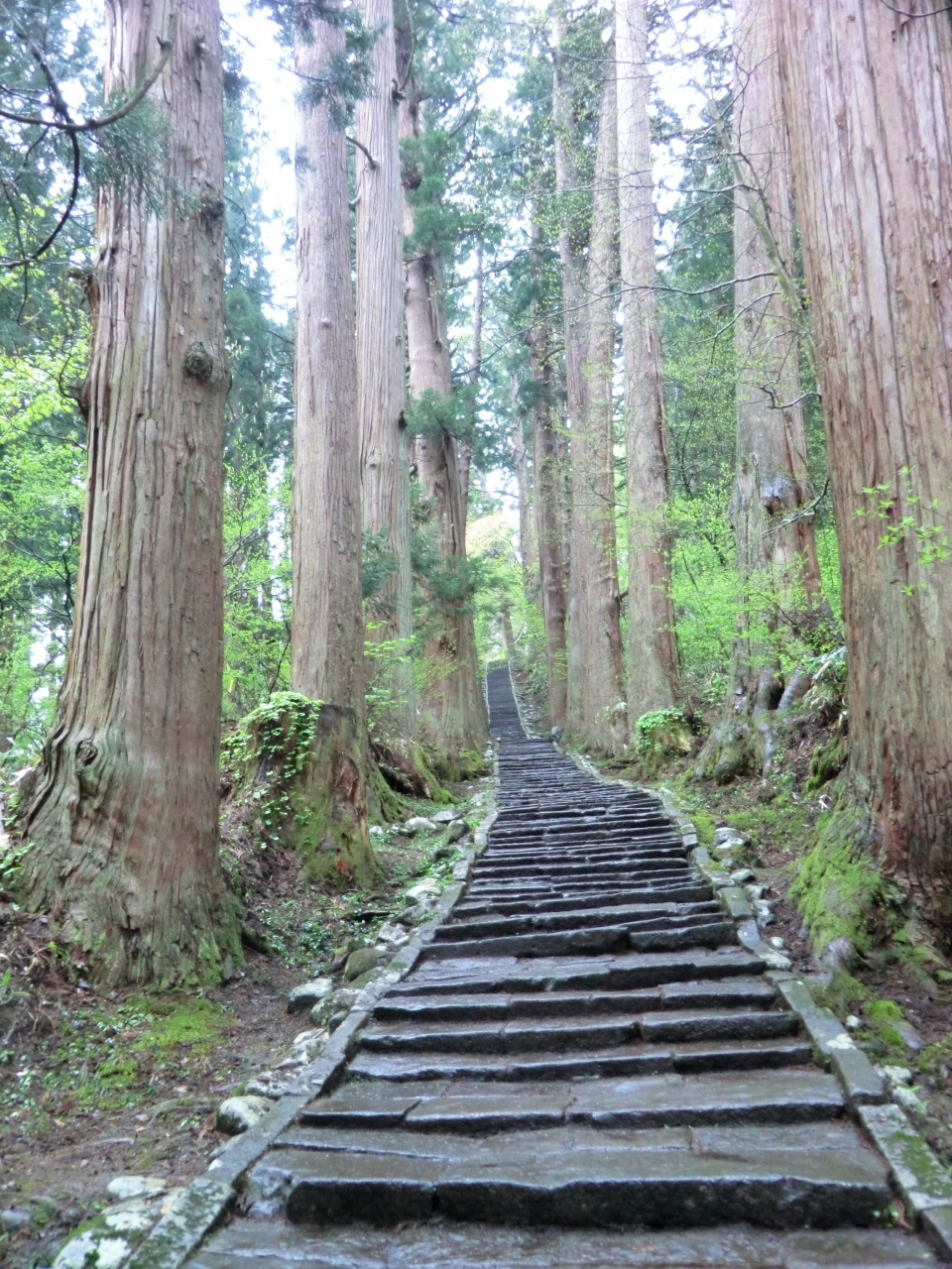 実は比叡山延暦寺の分院です。登山道から石段を上がったところにあります。平安時代初期に慈覚大師(円仁)が創建しました。根本中堂は本堂にあたるもので、ブナで作られた建物としては日本最古のものです。比叡山延暦寺から分火された「不滅の法灯」が千年以上灯し続けられています。
