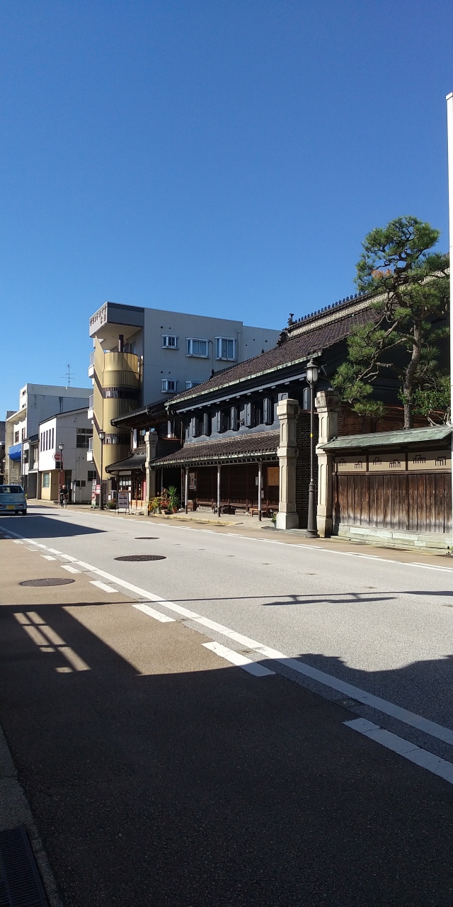 100メートルほど道の両側に木造の古い家並みや土蔵造りの家が並んでいます。ただこの通りは幅の広い道で、交通量もある通りなので、古い家並みが残る通りとしての一体感は余り感じません。でもベンチもあってきゅうけいできたりします。
