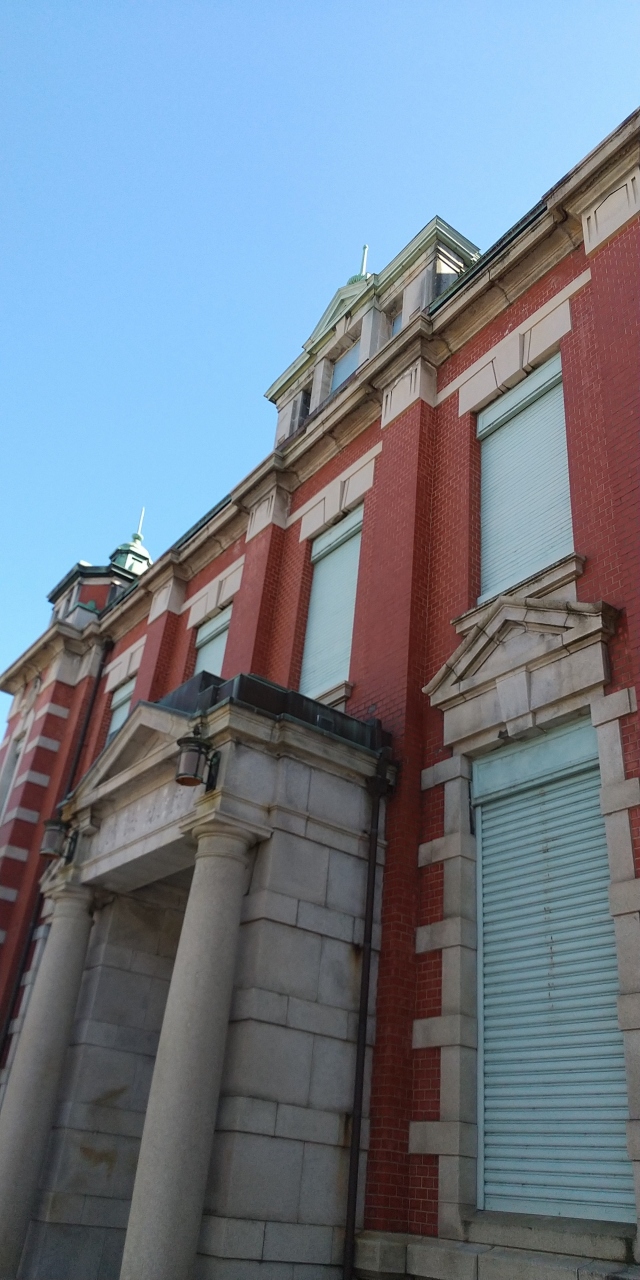 金町筋の西の端の方に赤レンガの銀行があります。1914年に高岡共立銀行の本店として建てられたもので、その後は富山銀行の本店などとしても使われています。現在は使用もされていないようですし、公開もされていません。外観の見学のみです。