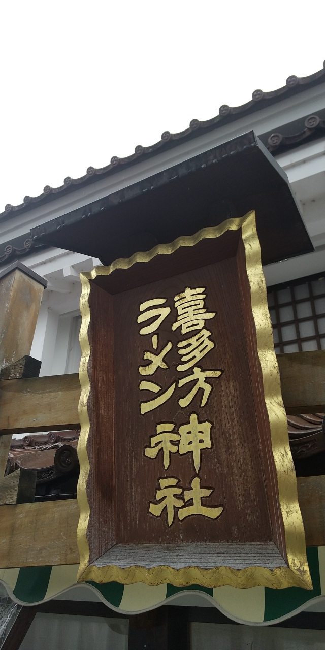 ラーメン神社の名の通り、お店の入り口には鳥居が建てられている。鳥居をよく見てみると天井部分が割り箸をモチーフとしていて個性的。