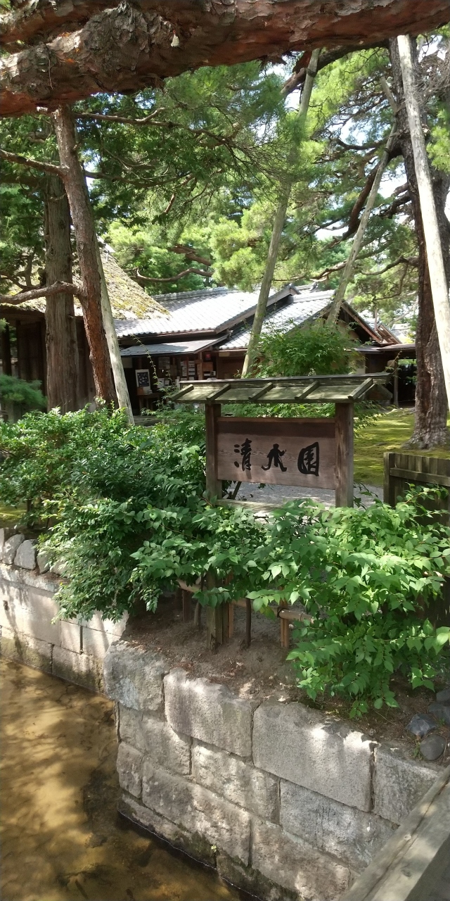 建物の前に 仕込みに使う水が流れています。