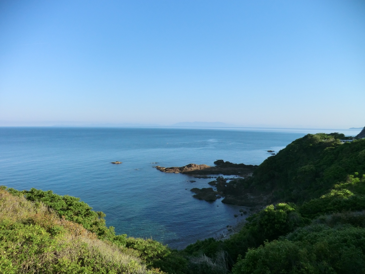 天草四郎時貞像は天草のあちらこちらにありますが、ここ鬼池港にある四郎像が1番良いい感じに見えました。殉教者としてのイメージの像が多いですが、ここの像は刀を持って戦いの姿だからでしょう。見つめている先は島原の原城址だとか。以前の旅行でちょうど反対側から眺めていたことになります。