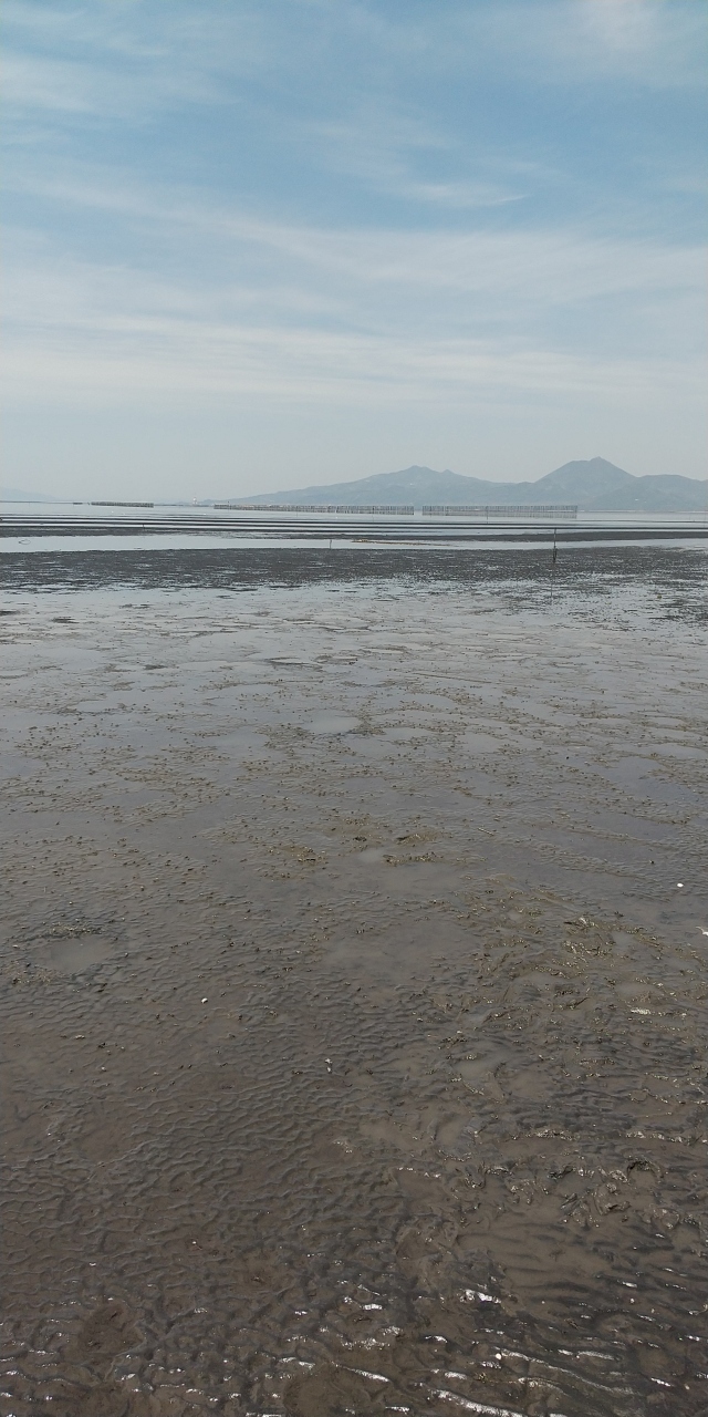 夕陽に映える干潟が見たかったが、とりあえず行ってみようと訪れたが、やはり潮と太陽の位置に恵まれた時に訪れるべきところ。